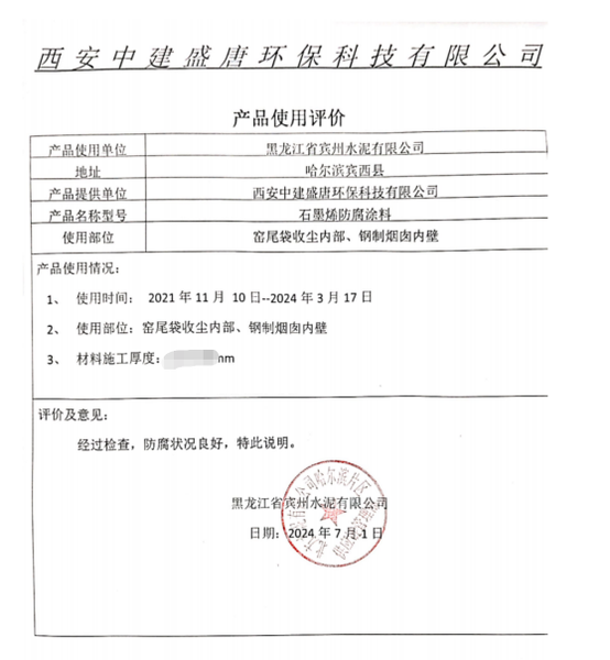 【施工现场】 经技术员现场勘测后为黑龙江滨州水泥有限公司定制了一套窑尾烟囱施工方案,针对 烟囱内部进行喷砂处理并采用钛盾科技专属研发的石墨烯防腐涂料对烟囱内壁做防腐,对于焊缝、腐蚀严重的关键部分进行石墨烯胶泥打底,对于烟囱顶部5米进行加固处理。